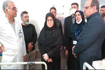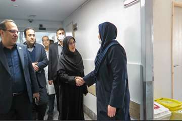 دکتر فاطمه مهاجرانی سخنگوی دولت به همراه دکتر نادر توکلی رئیس دانشگاه علوم پزشکی ایران و هیئت همراه در بیمارستان شهدای هفتم تیر حضور یافته و از مصدومین جنگ تحمیلی عیادت کردند.