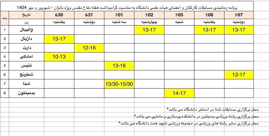 جدول زمان بندی مسابقات  به شرح زیر است: