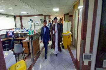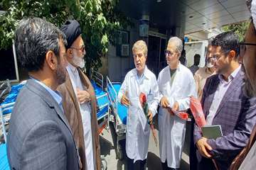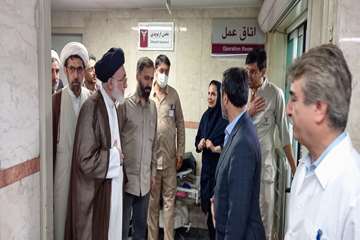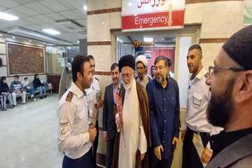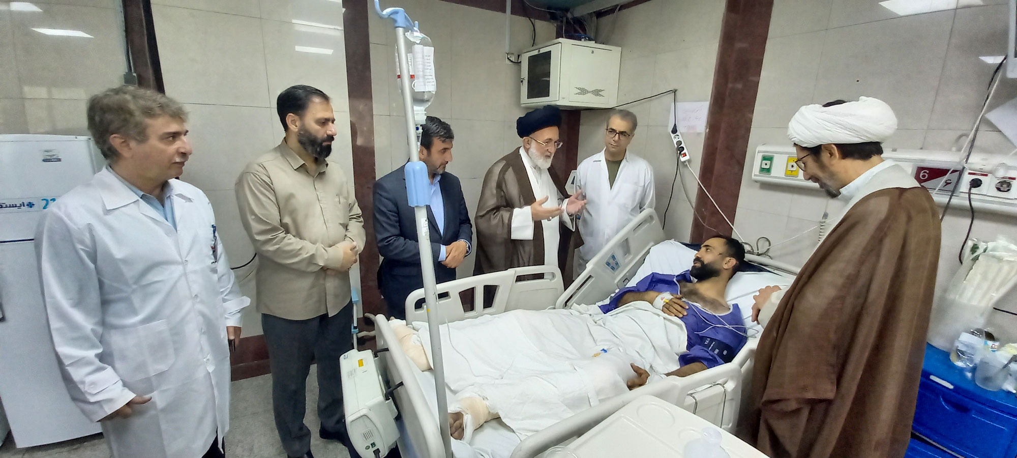 عیادت تولیت آستان حضرت عبدالعظیم الحسنی(ع) و فرماندار ویژه شهرستان ری از مصدومین حمله رژیم صهیونیستی در بیمارستان شهدای هفتم تیر